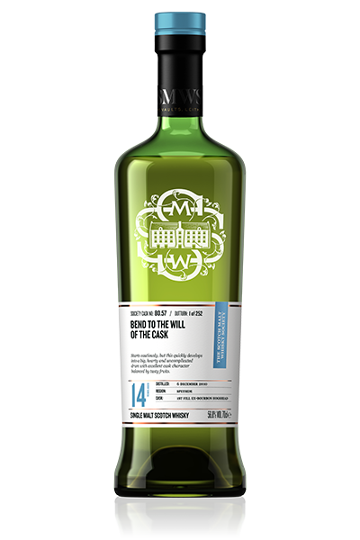 Sweet aromas of macaroons, burnt ginger biscuits and salted caramel merged with red liquorice, chocolate fudge cake and buttered toast, while light honey coated burnt heather. The flavours were bold and robust as applewood smoke washed over antiseptic-glazed lamb, roasted with rosemary and almonds, and served with kale fried in ghee, scorched limes and hot smoked mackerel. Adding water brought an earthier and more herbal demeanour with tarragon, rosemary and thyme on oysters, scallops and crab, accompanied by aniseed liqueur and cough syrup-cooked lamb shanks. Liquorice returned with pink peppercorns and burnt coconut husk before oak sawdust, chimney soot and dried herbs combined on the finish. Four years in an ex-bourbon hogshead before being transferred to a toasted ex-peated whisky hogshead that had previously been filled with whisky 66.124.